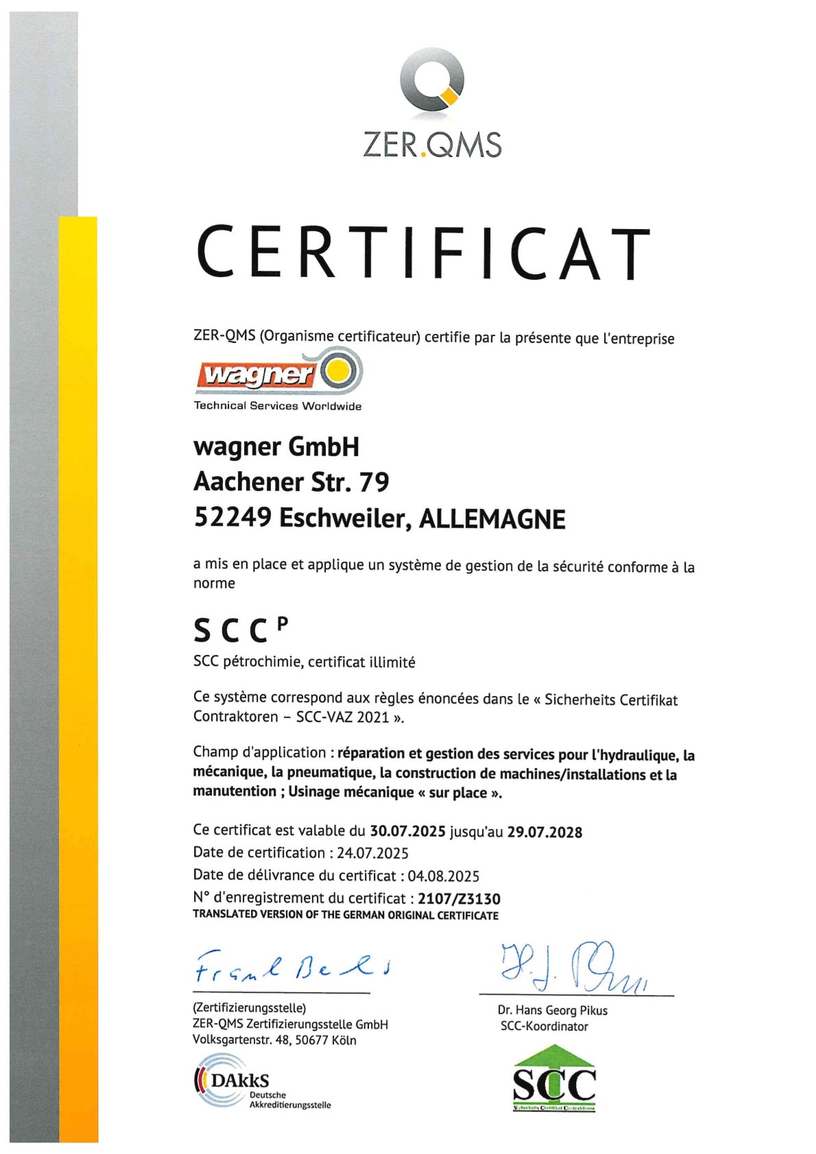 L'audit (ZER-QMS) a permis de prouver que les exigences du règlement "Sicherheits Certifikat Contaktoren - SCC-VAZ 2021", relatives à la gestion de la sécurité au travail en accord avec le standard SCC, sont remplies.